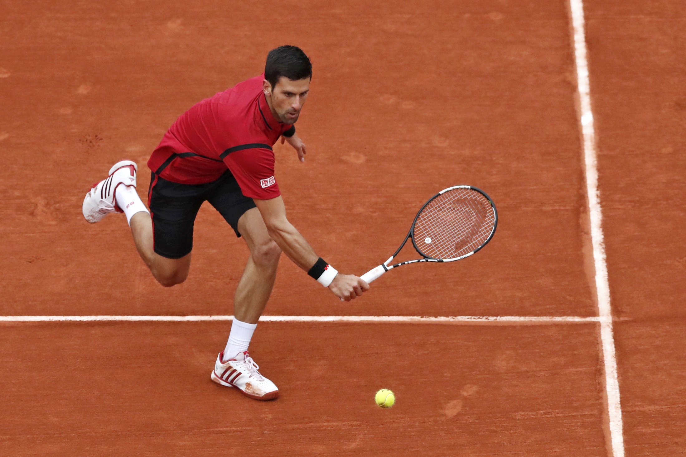 Novak Djokovic returns the ball during his match against Tomas Berdych during the French Open Men's Singles quarter-final on June 2, 2016.