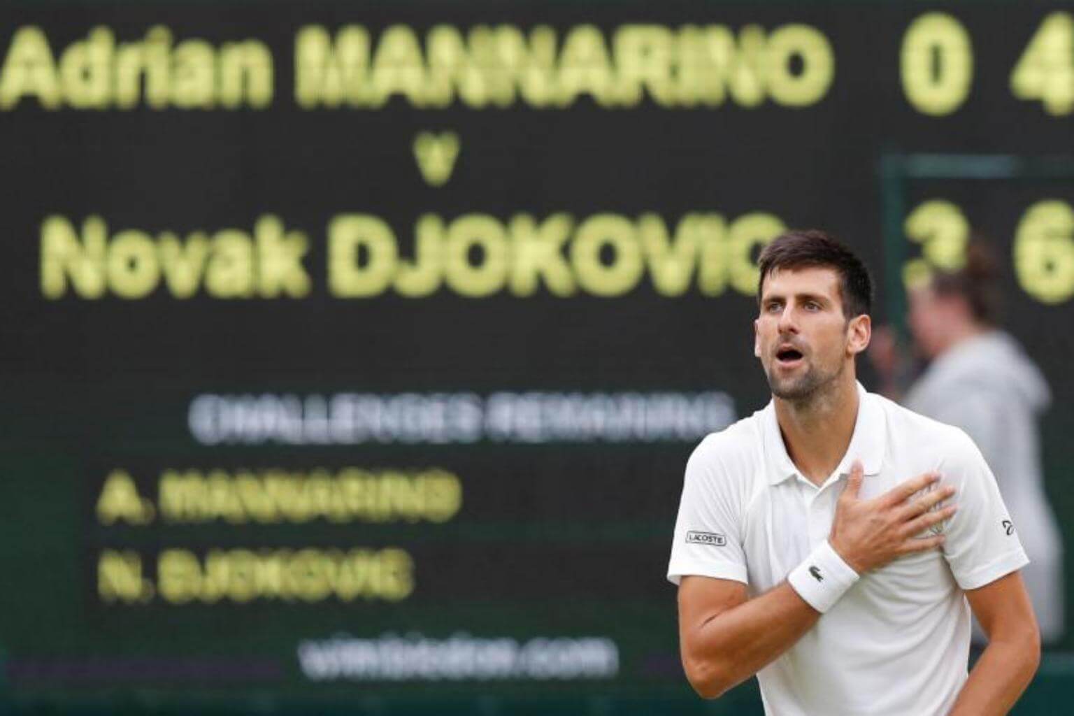 (AFP) - Three-time champion Novak Djokovic overcame an injury scare to reach the Wimbledon quarter-finals for the ninth time on Tuesday (July 11) with a 6-2, 7-6 (7-5), 6-4 win over France's Adrian Mannarino.
