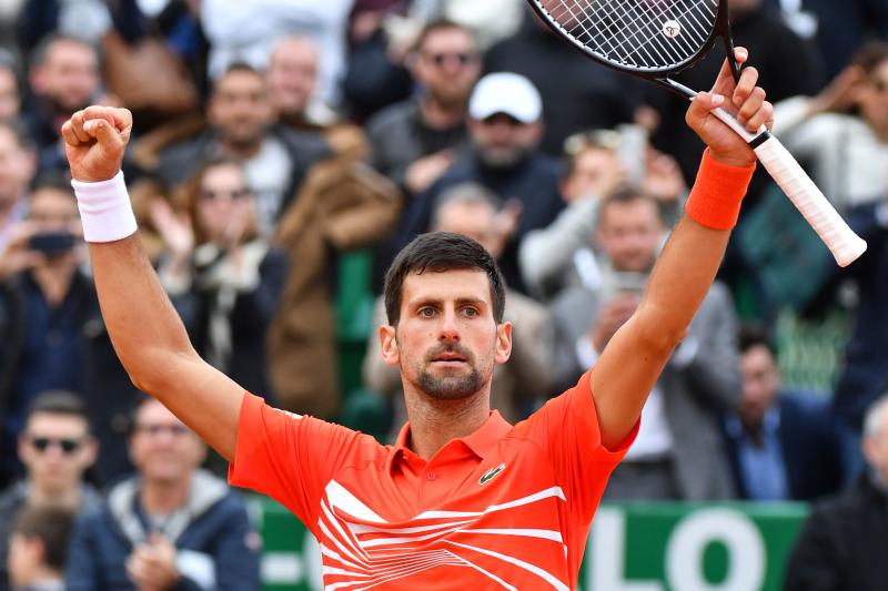 Serbia's Novak Djokovic celebrates after winning his tennis match against Germany's Philipp Kohlschreiber on the day 4 of the Monte-Carlo ATP Masters Series tournament on April 16, 2019 in Monaco.