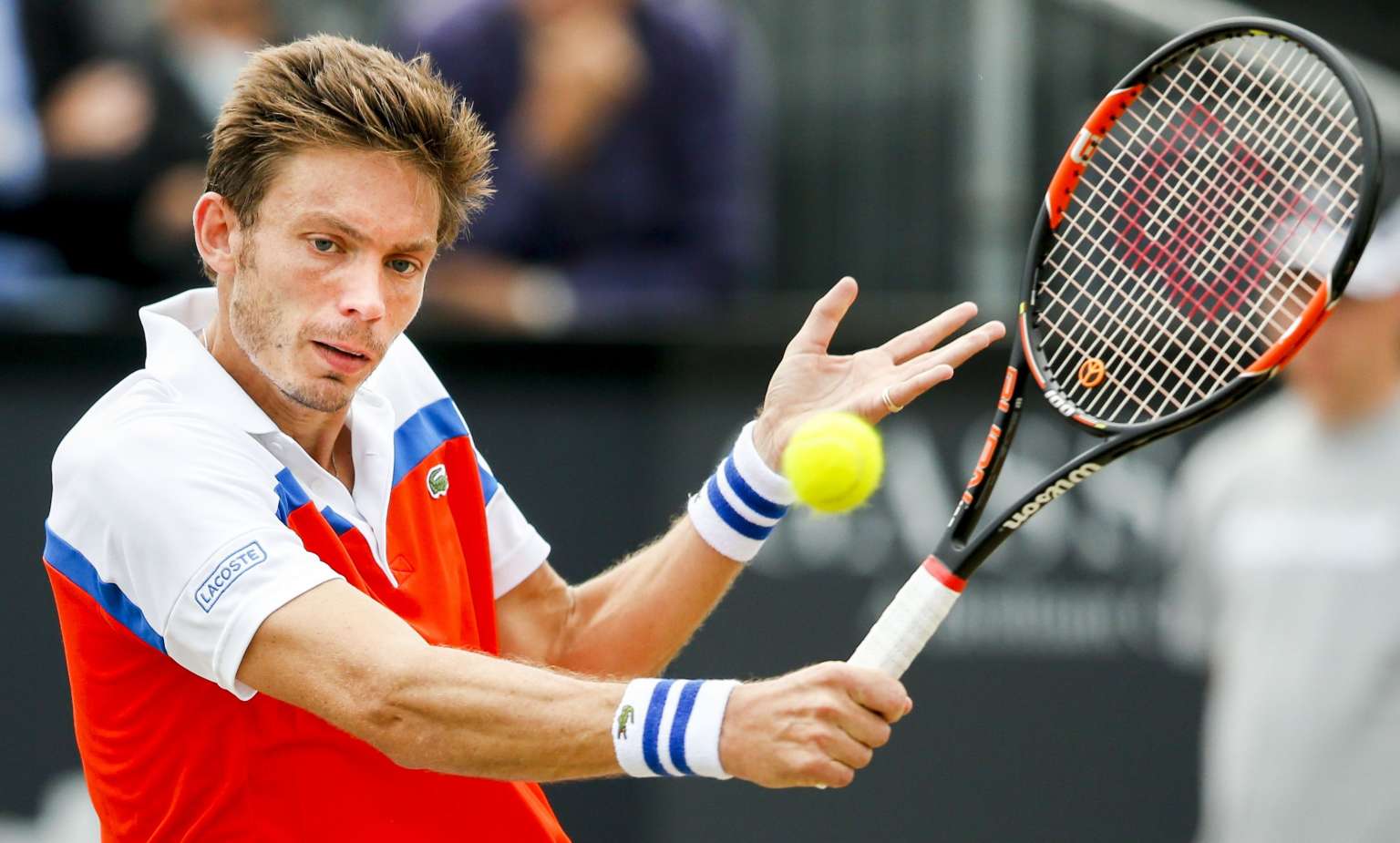 French player Nicolas Mahut returns the ball to Sam Querrey during the Ricoh Tennis Tournament semi-final match on June 11, 2016, in Rosmalen.