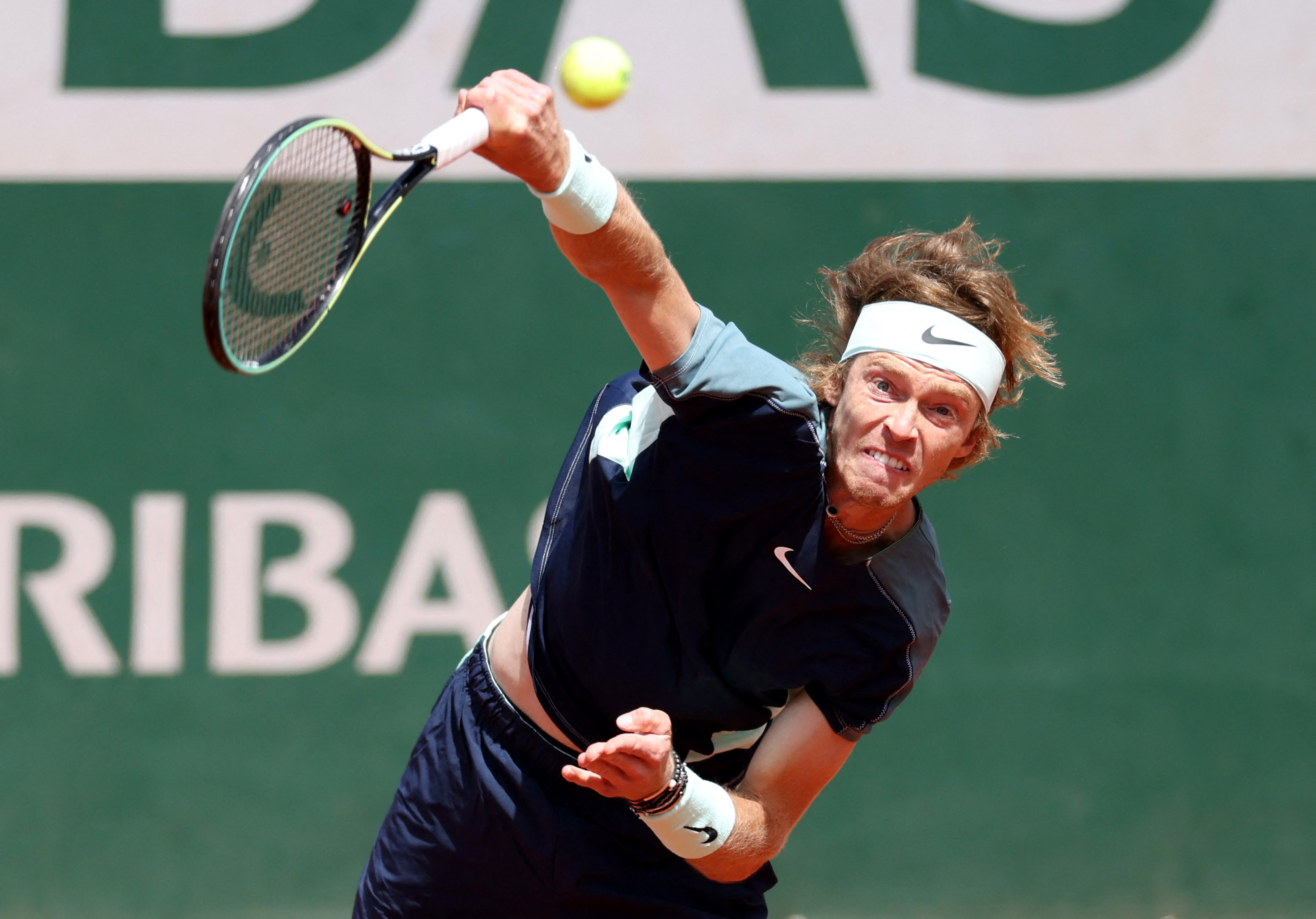 Andrey Rublev in action during his first round match against Kwon Soon-woo, on May 24, 2022.