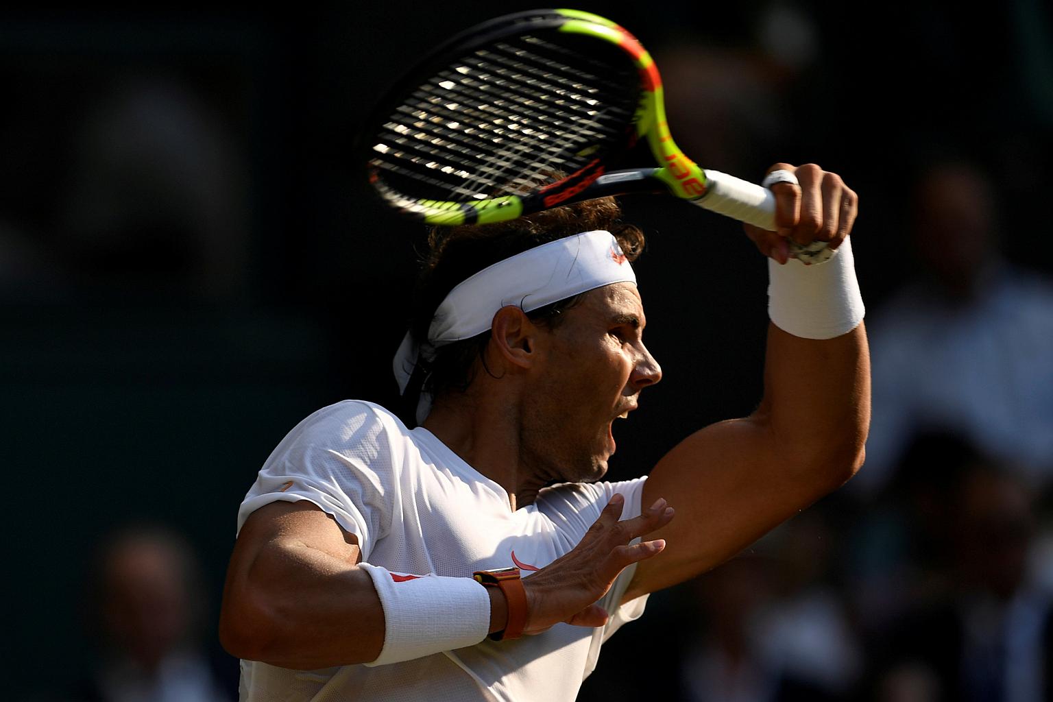 LONDON (REUTERS) - The bar was set absurdly high by the time Rafael Nadal walked onto Centre Court on Monday (July 9) but the Spaniard responded with a sensational 6-3 6-3 6-4 defeat of Jiri Vesely to reach the Wimbledon quarter-finals.