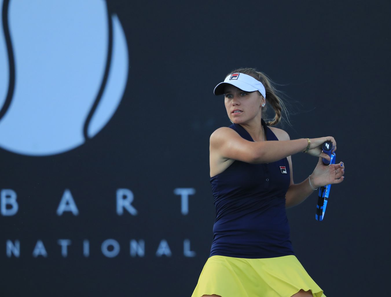 Sofia Kenin in action against Alize Cornet during a semi-final match of the Hobart International tennis tournament at Domain Tennis Centre in Hobart, Australia, on Jan 11, 2019.