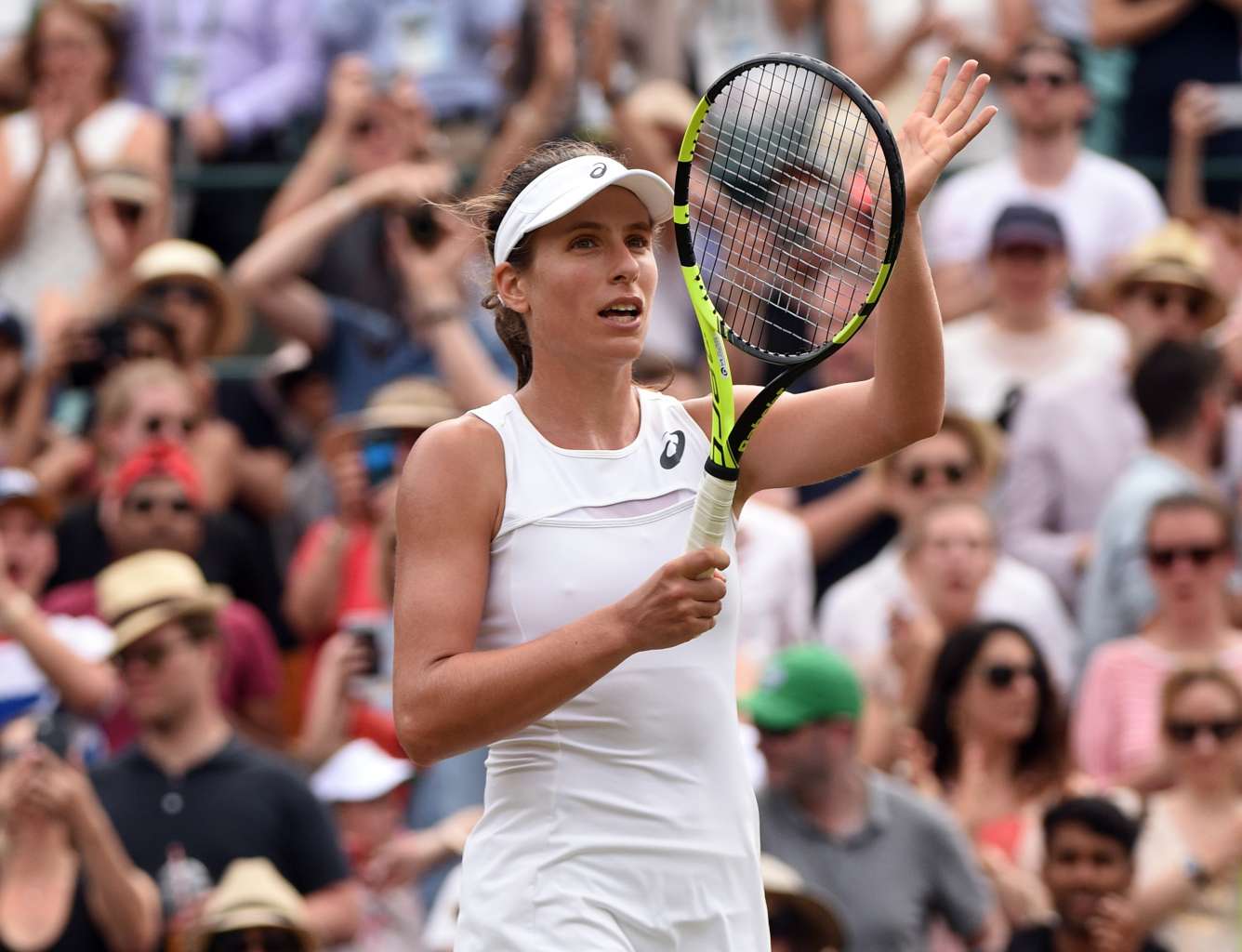 LONDON (REUTERS) - Johanna Konta kept the flag flying for British women at Wimbledon on Friday (July 7), reaching the last 16 with a comfortable victory over Greece's Maria Sakkari, and said she aimed to go all the way at this year's championships.