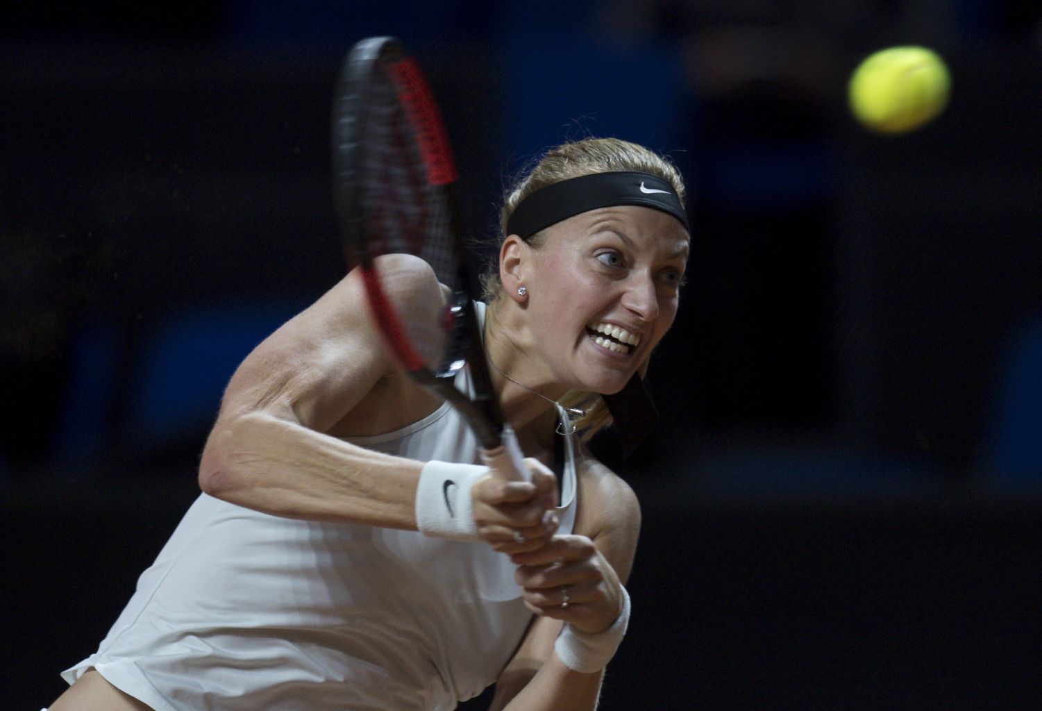 Kvitova in action during the Porsche Tennis Grand Prix tournament in Stuttgart, Germany.
