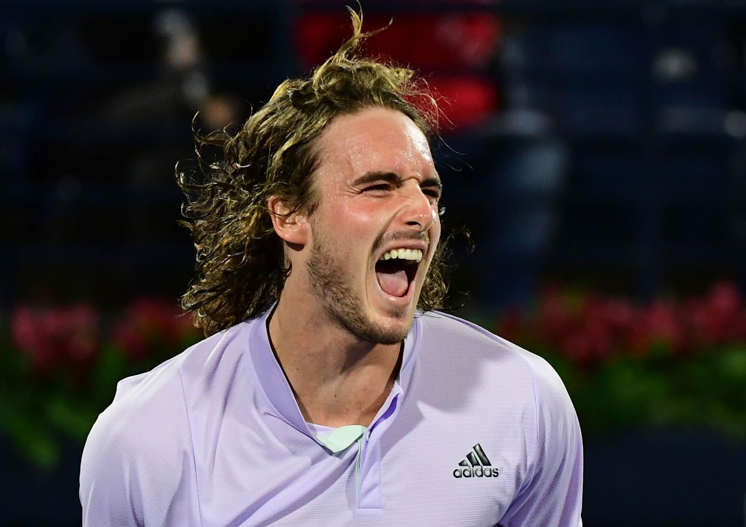 Tsitsipas celebrates during the quarter-finals of the Dubai Duty Free Tennis Championship.