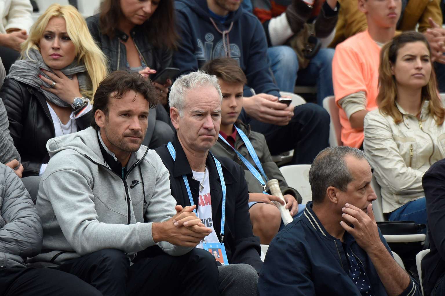 Former US tennis player John McEnroe (second from left) attends the 2016 French Tennis Open in Paris, on May 29, 2016.