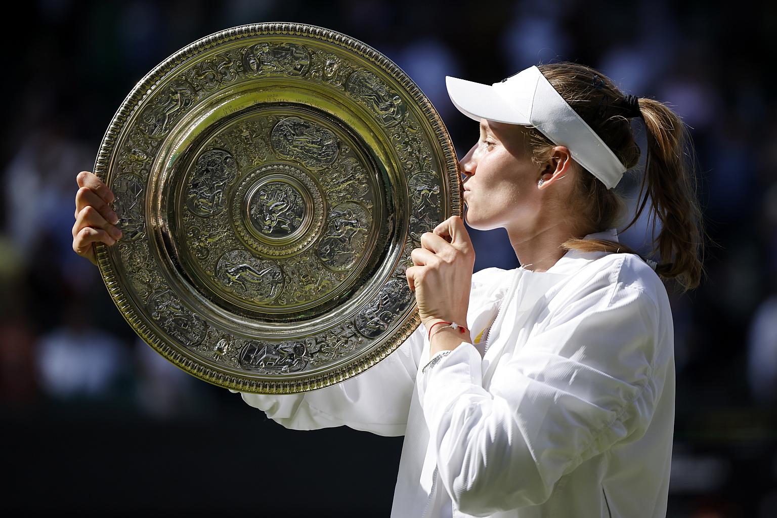Elena Rybakina with her trophy after winning Wimbledon on July 9, 2022.