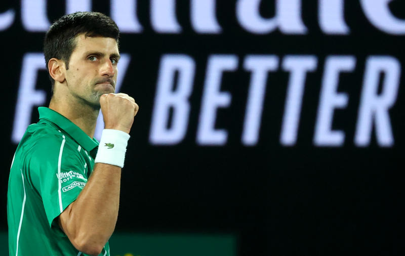 Serbia's Novak Djokovic reacts during his match against Austria's Dominic Thiem in the Australian Open on Feb 2, 2020.