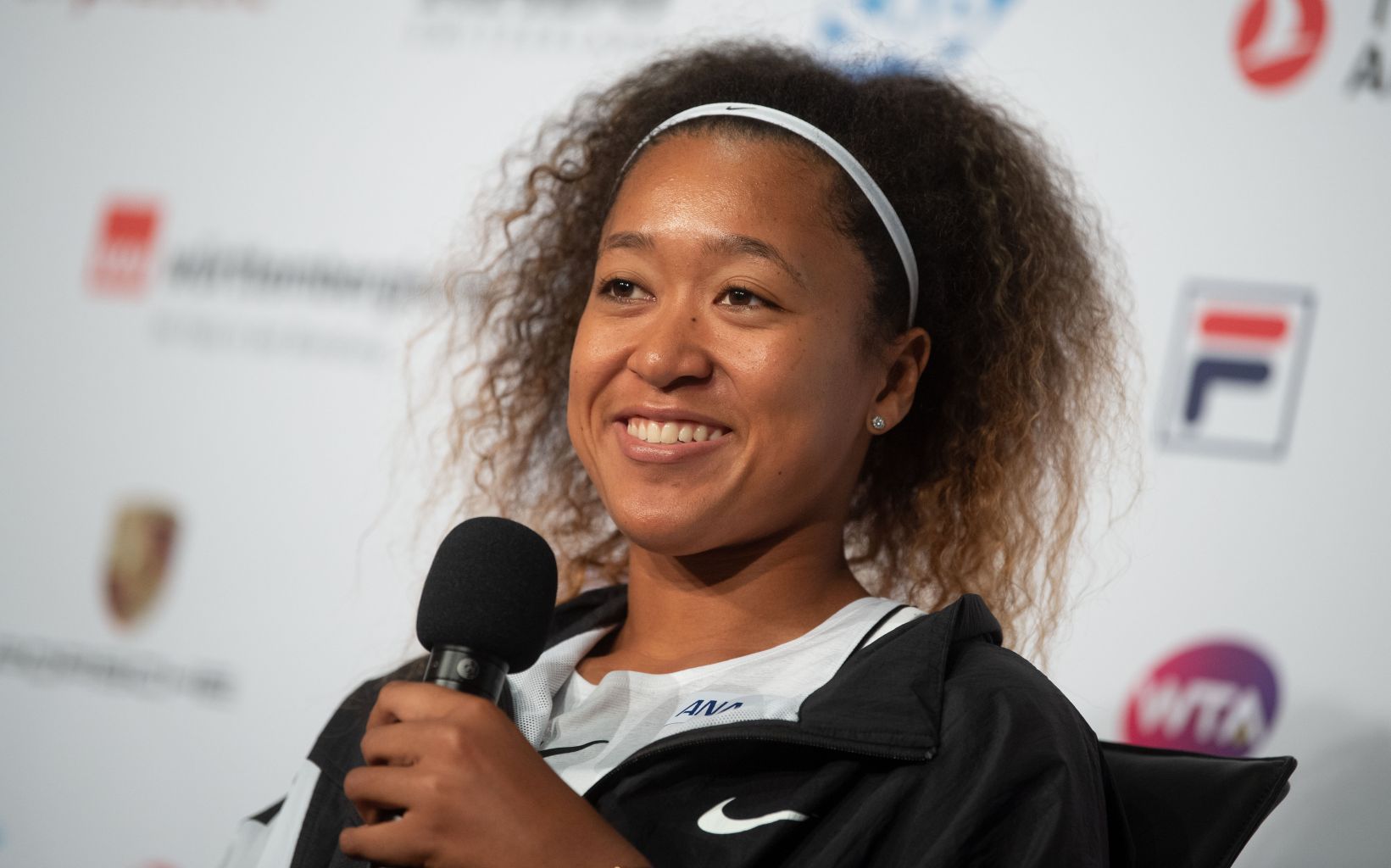 Osaka attends a press conference in Stuttgart.
