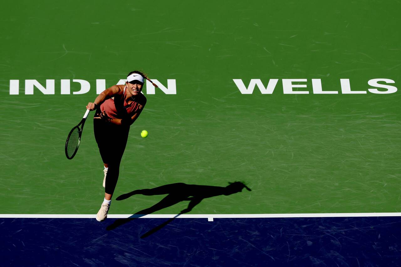 <p>INDIAN WELLS, CALIFORNIA - MARCH 12: Aryna Sabalenka of Belarus returns a shot to Jasmine Paolini of Italy during the BNP Paribas Open at the Indian Wells Tennis Garden on March 12, 2022 in Indian Wells, California. Matthew Stockman/Getty Images/AFP