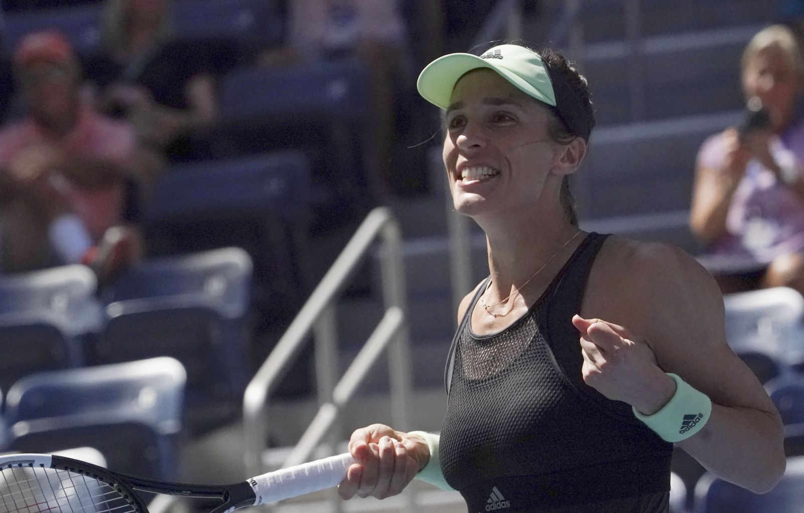 Petkovic reacts after defeating Petra Kvitová of the Czech Republic.