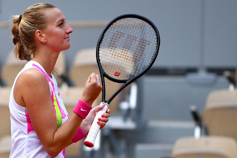 Czech Republic's Petra Kvitova celebrates after winning the women's singles quarter-final of The Roland Garros 2020 French Open tennis tournament on Oct 7, 2020.