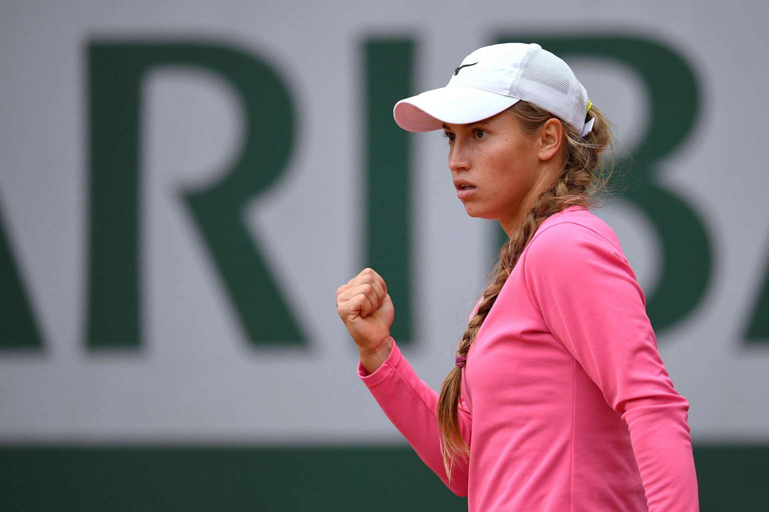 Kazakhstan's Yulia Putintseva celebrates after winning a point against Spain's Carla Suarez Navarro during the Roland Garros 2016 French Tennis Open in Paris on June 1, 2016.