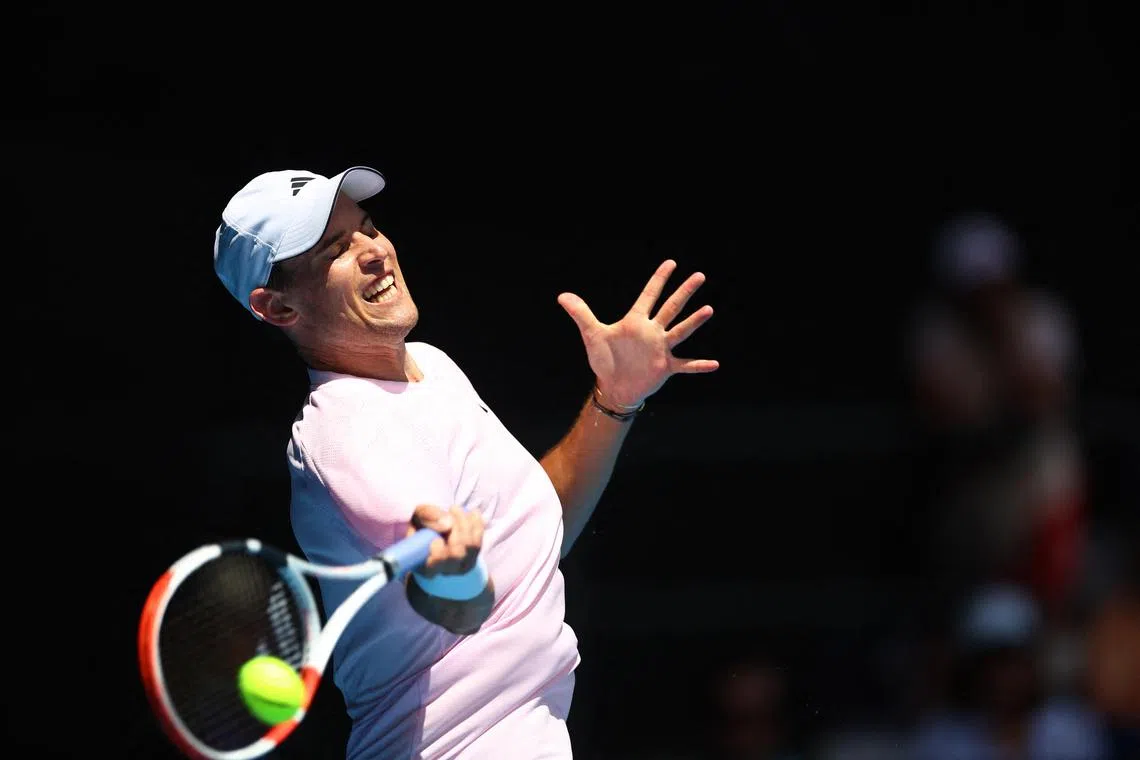 Austria's Dominic Thiem during his first-round match against Russia's Andrey Rublev at the Australian Open on Jan 17, 2023.