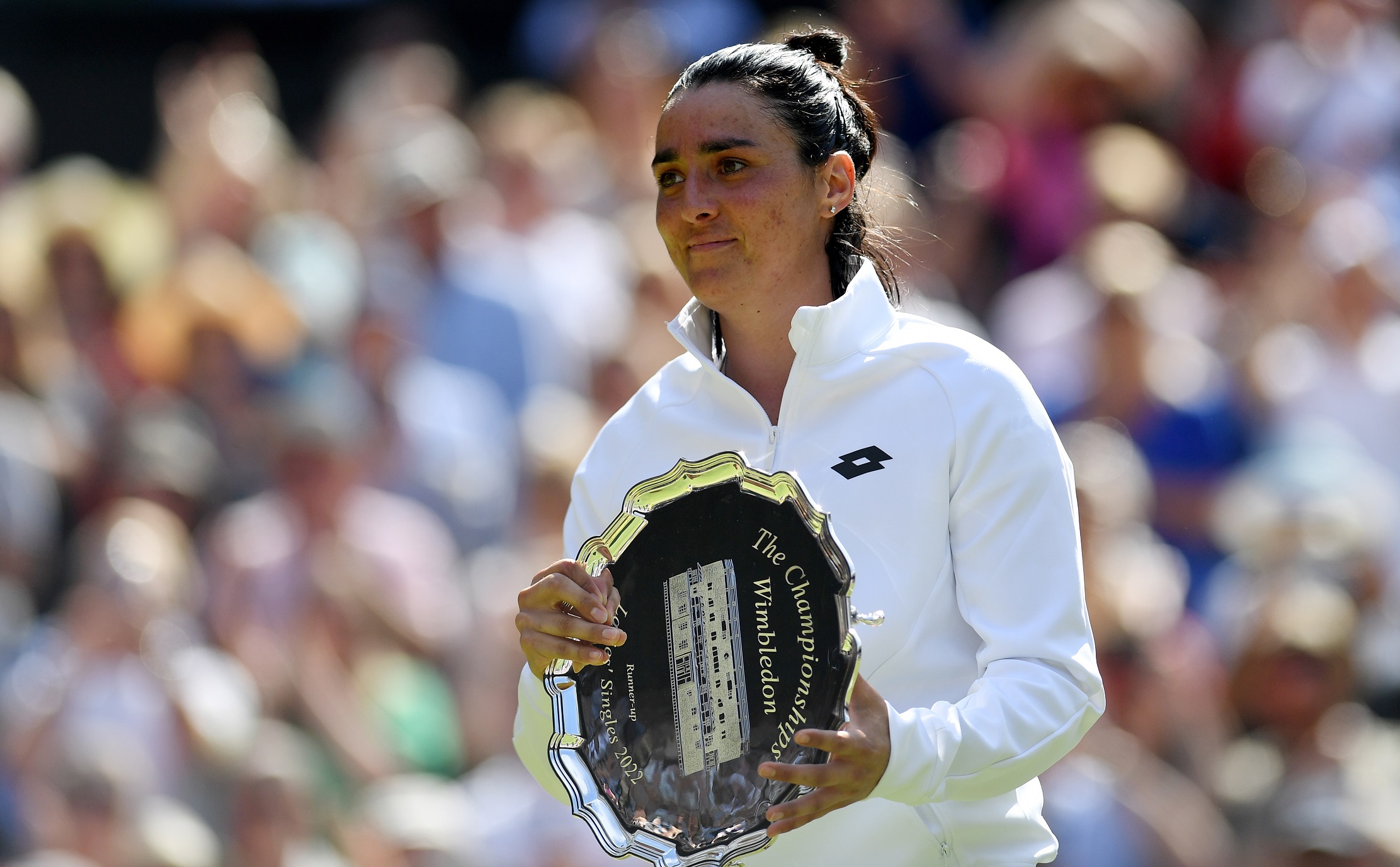 Runner-up Ons Jabeur of Tunisia poses with her trophy.