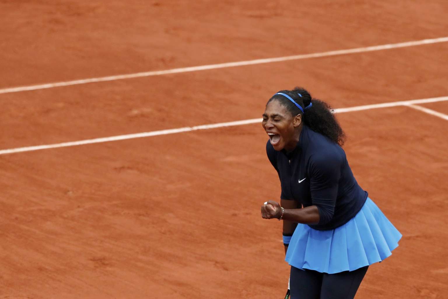 Serena Williams reacts at the French Open women's singles semi-final match on June 3, 2016.