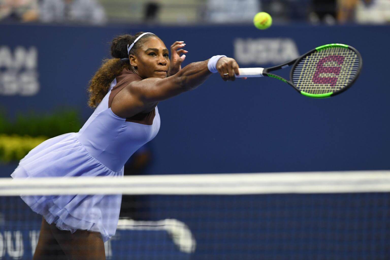 Serena Williams hits a return to Carina Witthoeft during Day 3 of the 2018 US Open Women's Singles match on Aug 29, 2018.