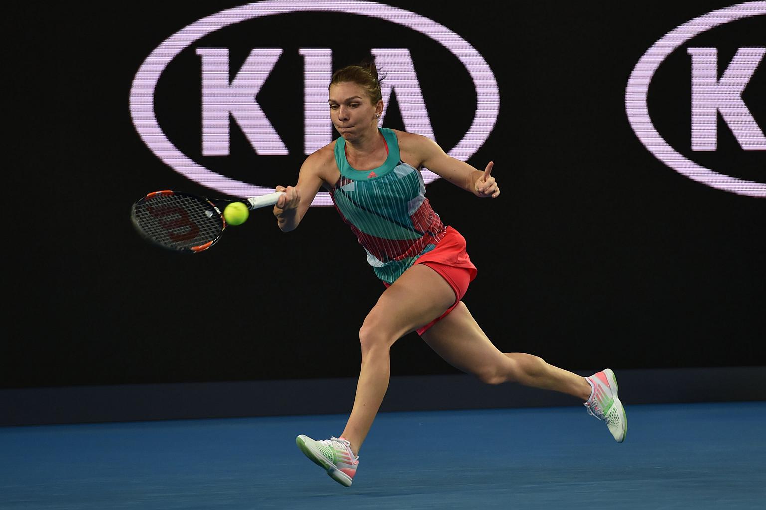 Romania's Simona Halep plays a forehand at the Australian Open on Jan 19, 2016.