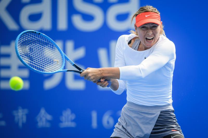 Maria Sharapova of Russia hits a return against Wang Xinyu of China (not pictured) during their women's singles second round match at the Shenzhen Open tennis tournament in Shenzhen in China's southern Guangdong province on Jan 2, 2019.