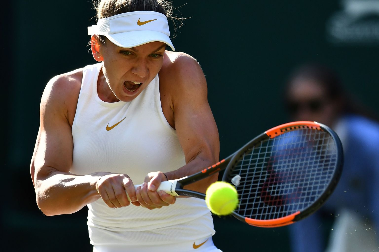 Playing with a lighter load on her shoulders after winning the French Open title last month, Halep rolled back her arms and let the winners fly off her racket strings.
