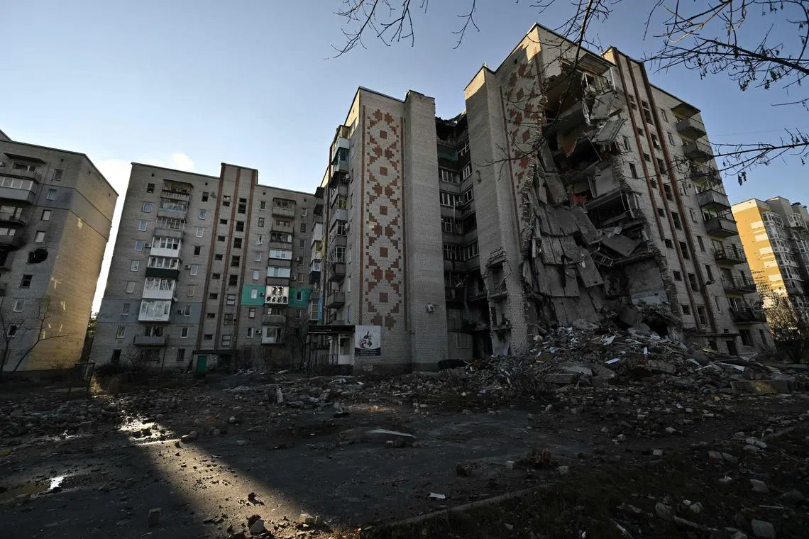 Buildings heavily damaged by attacks are seen in the town of Lyman, in Ukraine’s Donetsk region, on Dec 14, 2022, amid Russia’s invasion of Ukraine.