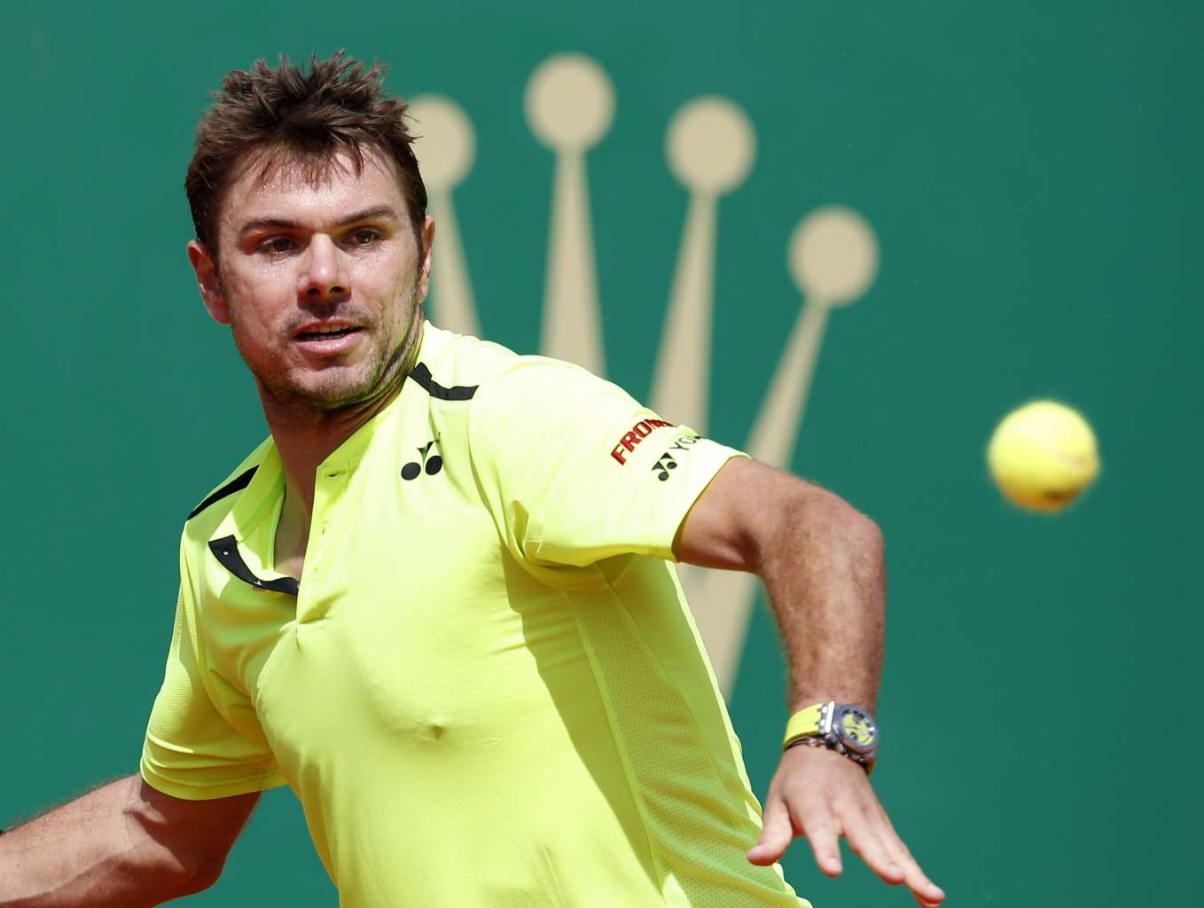 Stan Wawrinka hitting a return to Philipp Kohlschreiber at the Monte-Carlo Rolex Masters on April 13, 2016.