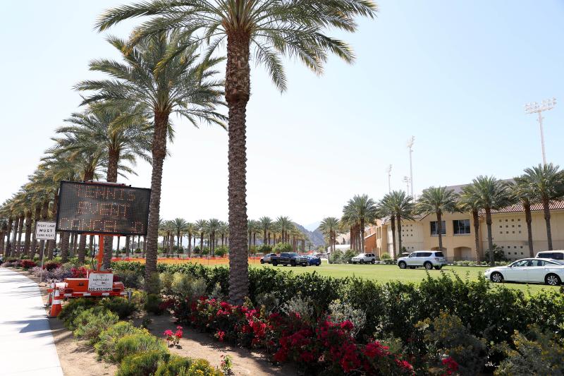 A "Tennis Is Cancelled" sign flashes outside the Indian Wells Tennis Garden in Indian Wells, California, on March 9, 2020.