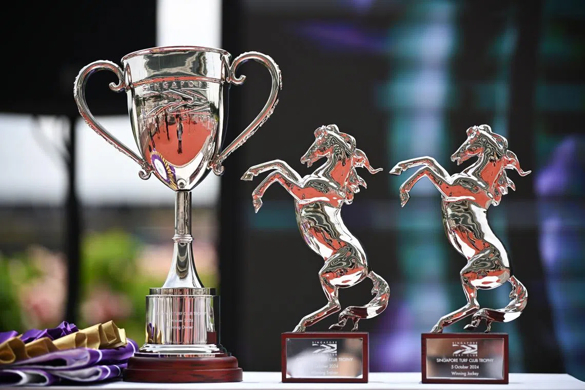 Horse racing trophies on display at the Singapore Turf Club on Oct 5, 2024.