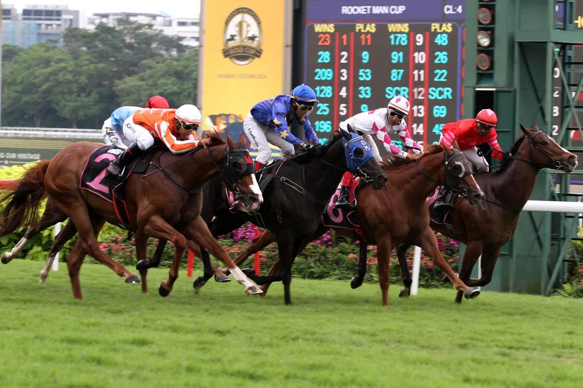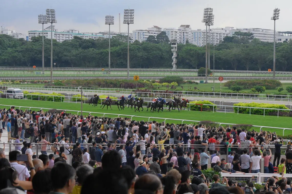 A race gets under way at the Singapore Turf Club on Oct 5.