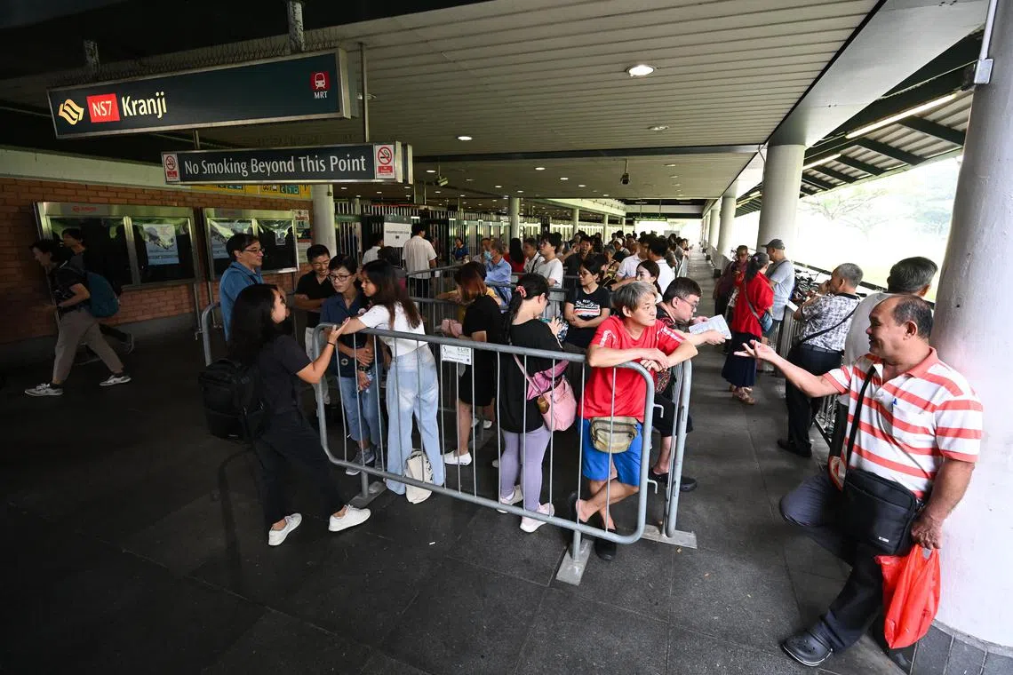 People queueing to enter the Singapore Turf Club outside Kranji MRT station at 9.05am on Oct 5.