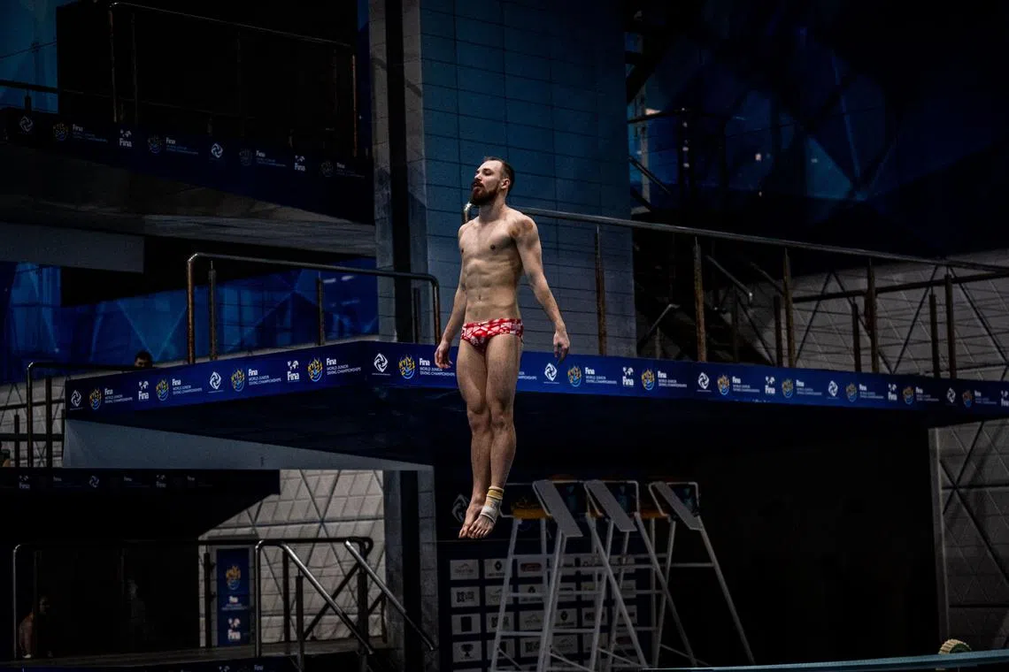 “When there is an air-raid siren, men in swimming trunks and women in swimsuits run to the bomb shelter and wait until the siren ends,” said 26-year-old Ukrainian diver Stanislav Oliferchik.