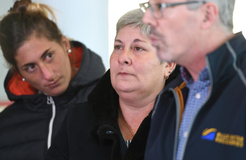 Emiliano Sala's mother, Mercedes (centre), and his sister Romina listen to David Mearns, an operations expert of the deep water search and recovery during a press conference at Guernsey airport on Jan 28, 2019.