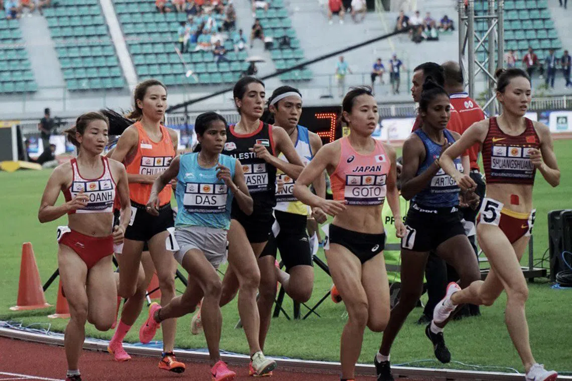 Singapore’s Goh Chui Ling (second from left) in the women’s 1,500m final at the Asian Athletics Championships in Bangkok.