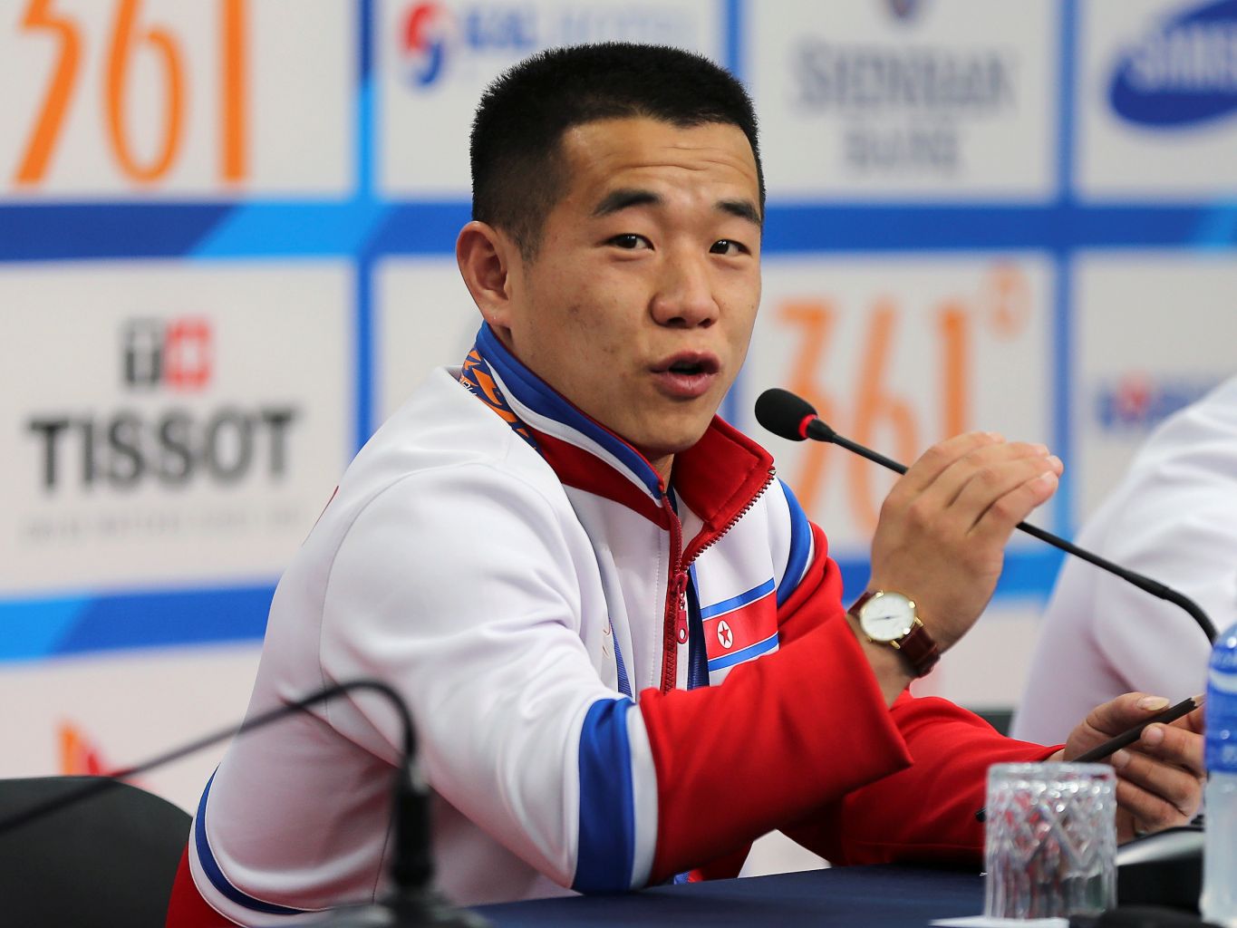 North Korea's Om Yun Chol speaking at a news conference in 2014.
