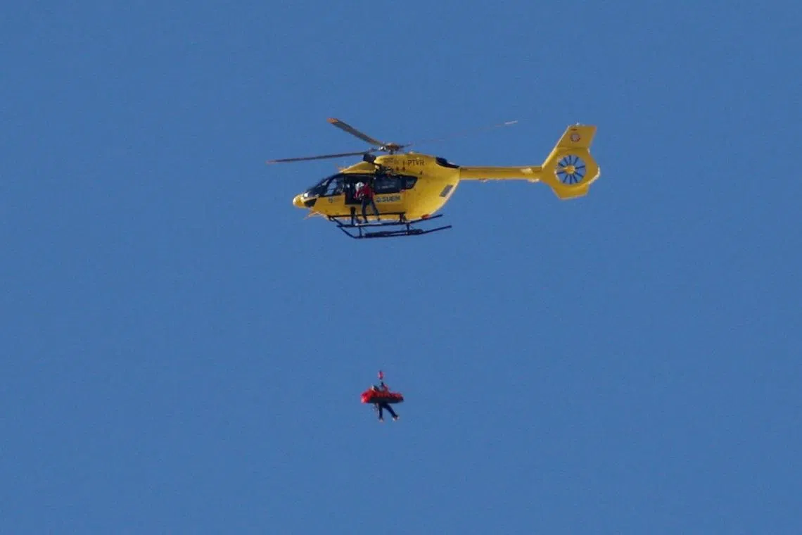A helicopter carries Lindsey Vonn after she crashed during the women’s downhill.