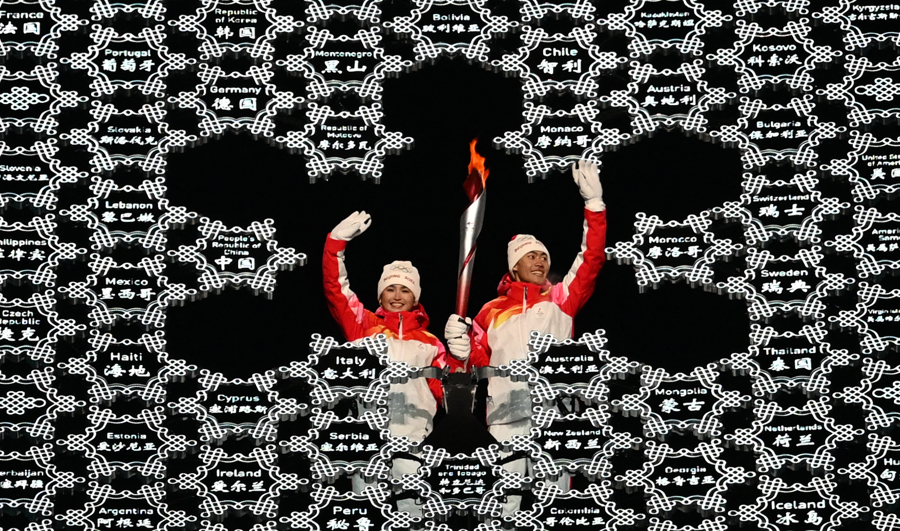 BEIJING (REUTERS) - A cross-country skier born in Xinjiang was one of two final torchbearers who ended the Olympic opening ceremony by sending a flame into the sky on a giant snowflake.