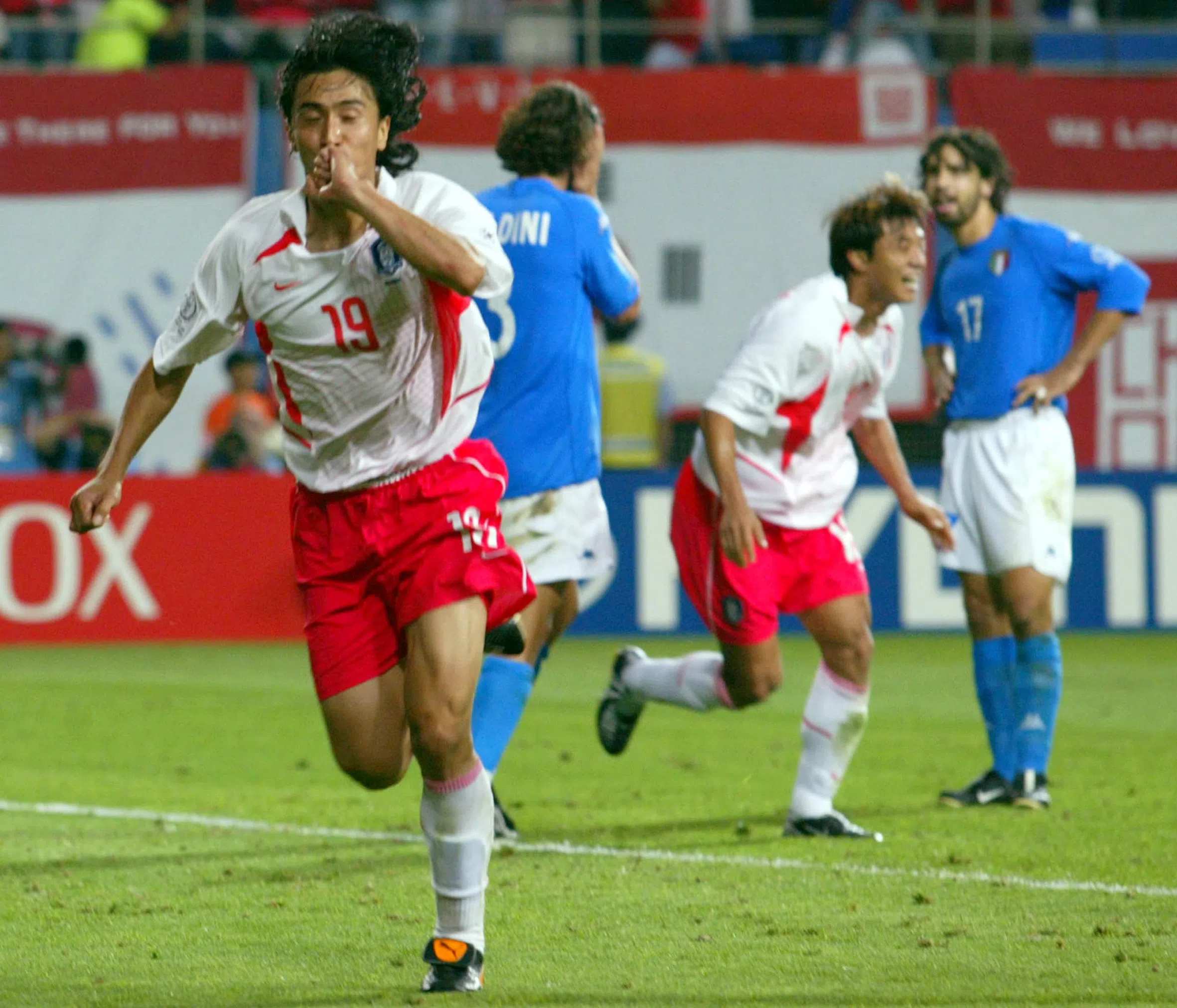 Ahn Jung-hwan wheels away after scoring his famous goal against Italy.