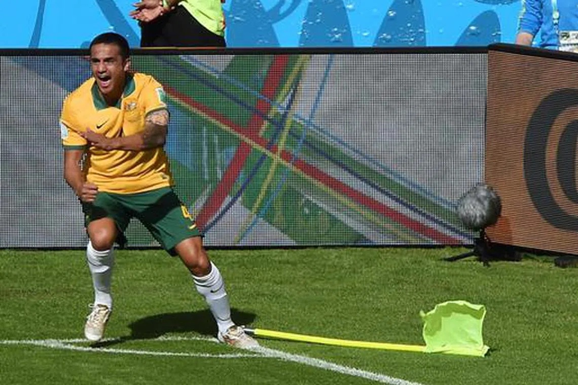 Tim Cahill marked his stunning goal at the 2014 World Cup with his trademark celebration, throwing jabs at the corner flag.
