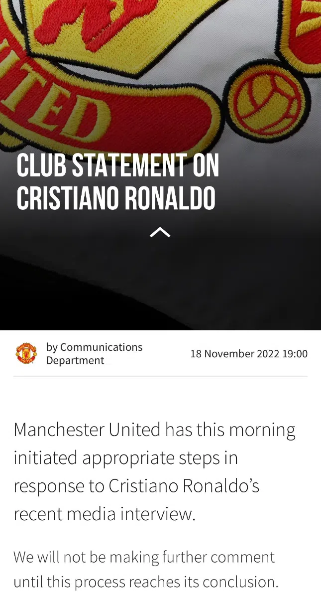 “Manchester United has this morning initiated appropriate steps in response to Cristiano Ronaldo’s recent media interview,” the club said in a statement.