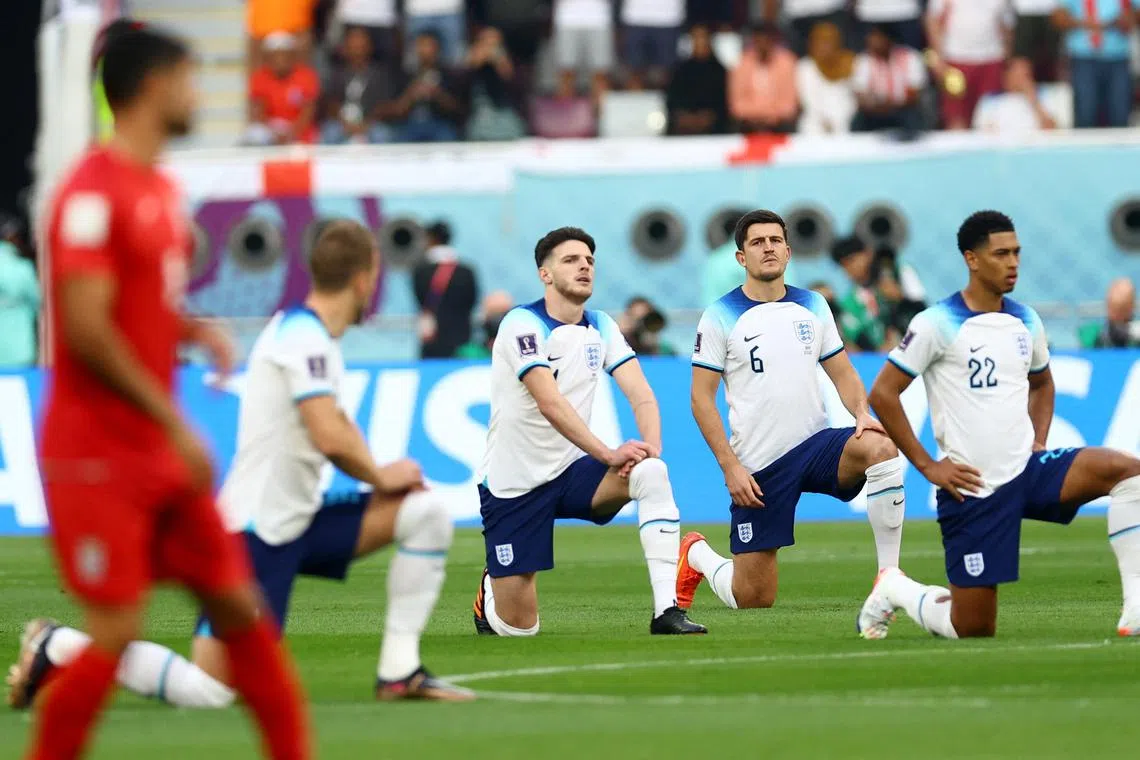 England’s entire starting XI knelt in unison seconds before the kick-off of their opener against Iran on Monday. The gesture is to support anti-racism movements worldwide, including “Black Lives Matter”.