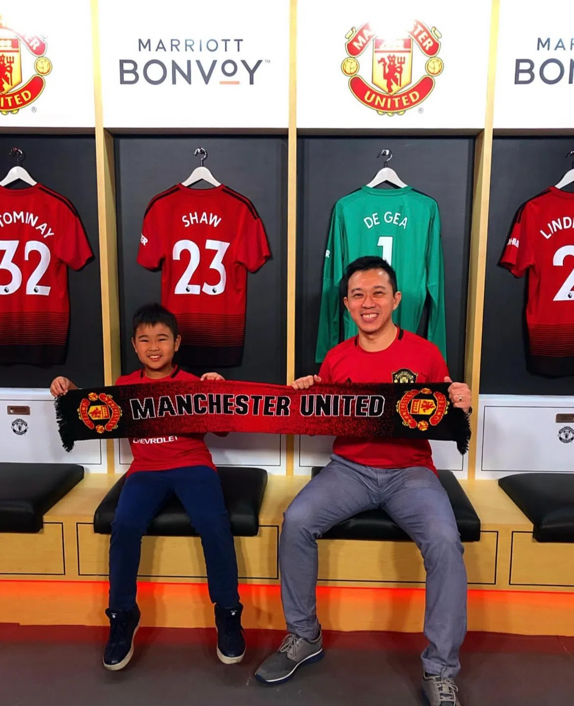 Singaporean football fan Dean Lee (right) with his son Hayden. The Manchester United fans are looking forward to going for their first World Cup.