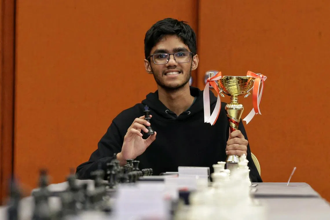 Singapore's chess grandmaster Siddharth Jagadeesh, 17, with his trophy from the Singapore Internation Open on Dec 5. He finished third overall.