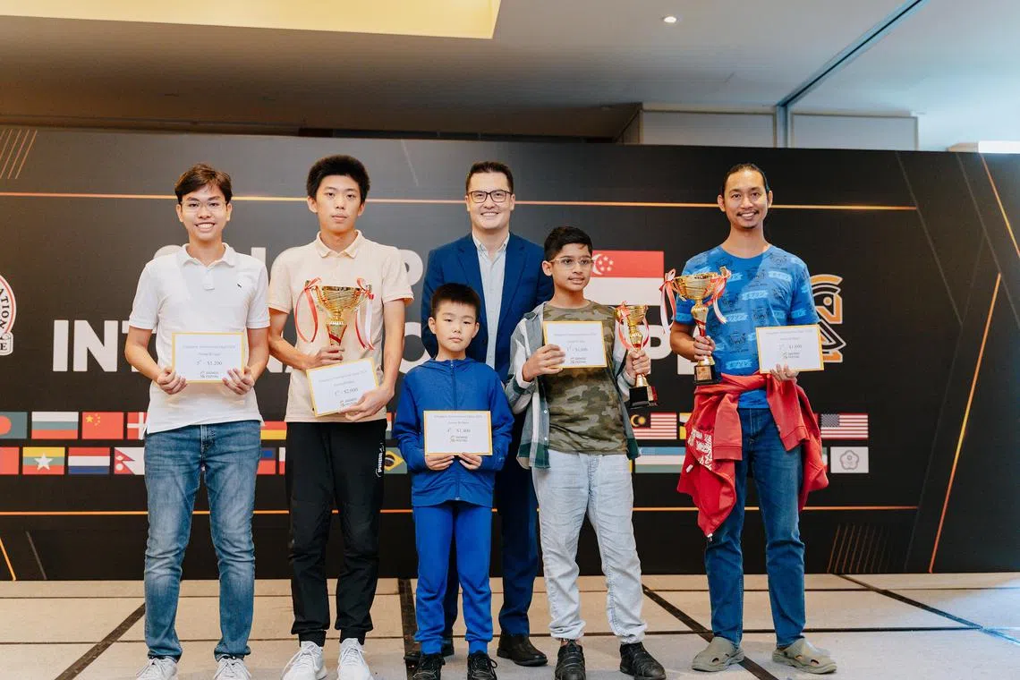 Yu Bei Hao (second from left) won the Singapore International Open Group B title despite falling out of the Singapore Chess Federation's high performance programme in 2022.