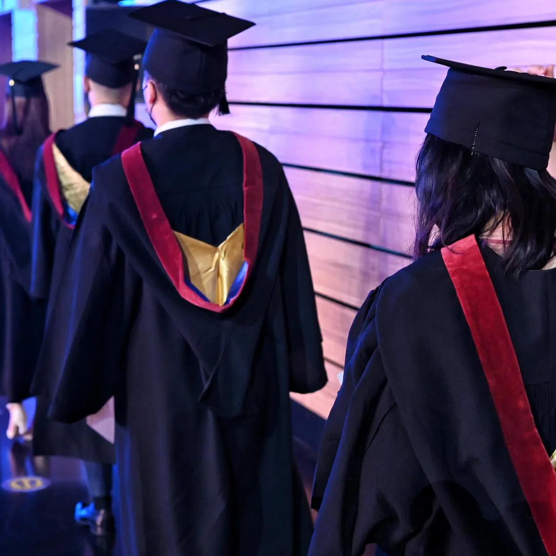 pixgeneric/Shintaro Tay/ Graduating students from Nanyang Technological University (NTU) leaving the auditorium after a convocation ceremony on July 22, 2022. Keywords: university education, graduation, students, tertiary institutions.