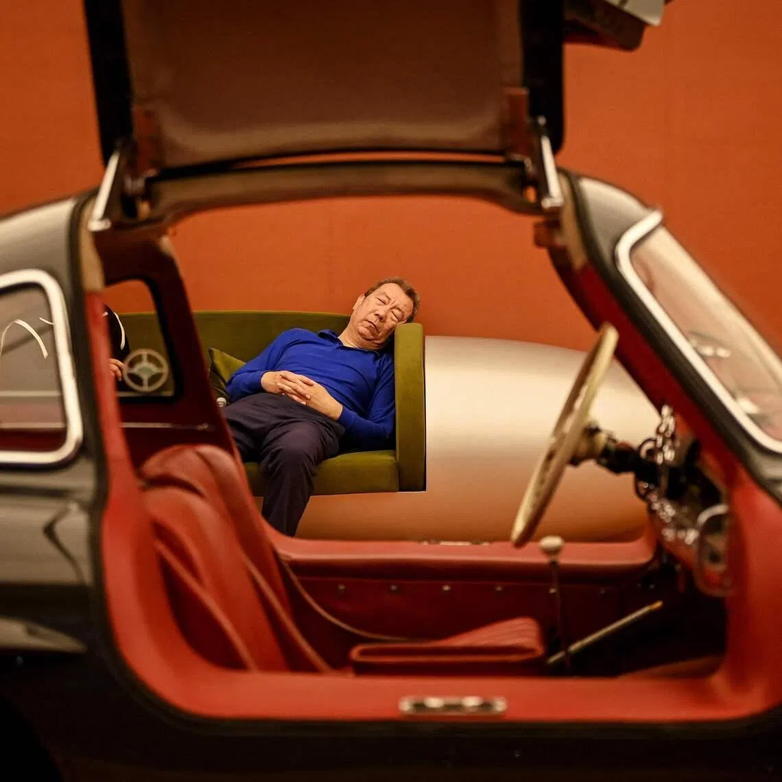 A woman sitting on a sofa at the Veuve Clicquot "Chasing the Sun" installation, in collaboration with British-Nigerian artist and designer Yinka Ilori, as part of the Milan Design Week Fuorisalone exhibition, in Milan, Italy, on April 20, 2026.