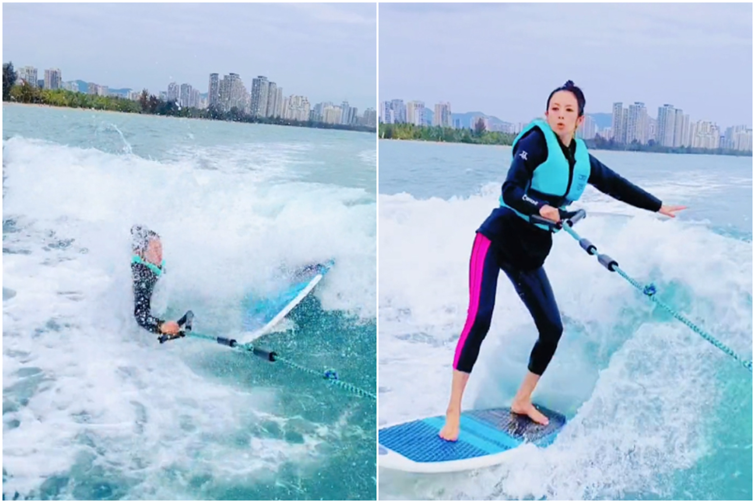 Chinese actress Zhang Ziyi succeeds in wakesurfing after numerous attempts