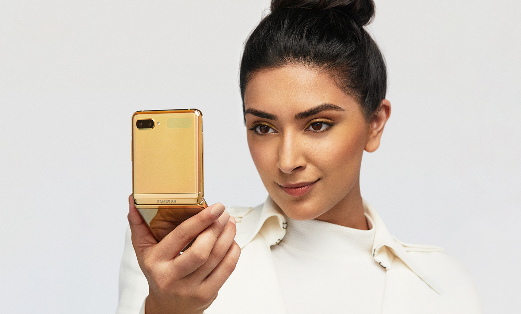 Get ready for a brand new mobile phone experience with the Samsung Galaxy Z Flip, now in Mirror Gold. PHOTO: SAMSUNG