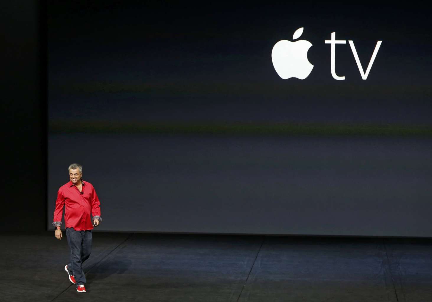 Mr Eddie Cue, Apple's senior vice president of Internet Software and Services, takes the stage to discuss Apple TV during an Apple media event in San Francisco, California on Sept 9, 2015.