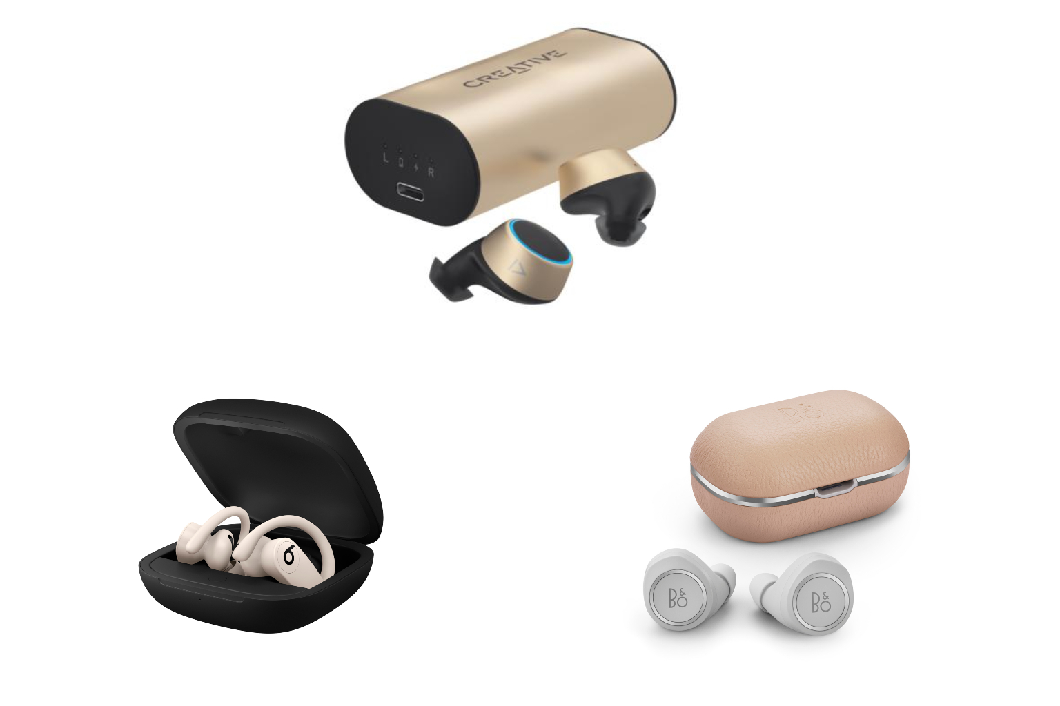 (Clockwise from top) Creative Outlier Gold, B&O BeoPlay E8 2.0, and Beats Powerbeats Pro true wireless in-ear headphones.